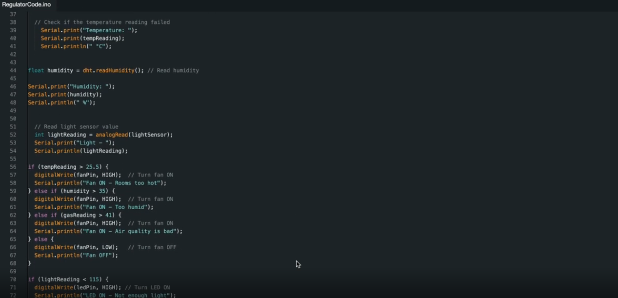 I programmed the Arduino to constantly process the sensors and turn on a fan or LED whenever the temperature, humidity, or air quality went out of range. The setup became a simple and scalable control system that kept the environment stable on its own. This project helped me strengthen my skills in sensor calibration, embedded programming, and system automation.
